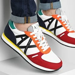 • Baskets tendance en nylon et aspect cuir avec logo Armani Exchange brodé